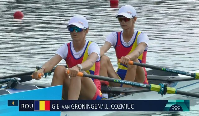 A treia și ultima finală cu prezență românească la canotaj în sesiunea de vineri, 2 august, va fi cea de la dublu vâsle categorie ușoară, la 13:22, Ionela Cozmiuc și Geanina van Groeningen în luptă pentru medalie. Acestea și-au câștigat seria din semifinale.