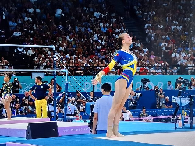 19:34 Ana Bărbosu și-a încheiat evoluția la sol și primește aplauze generoase din partea colegelor ei. E notată cu 13.566. Între timp Simone Biles a primit 14.900 la sărituri, cea mai mare notă din această finală de până acum.